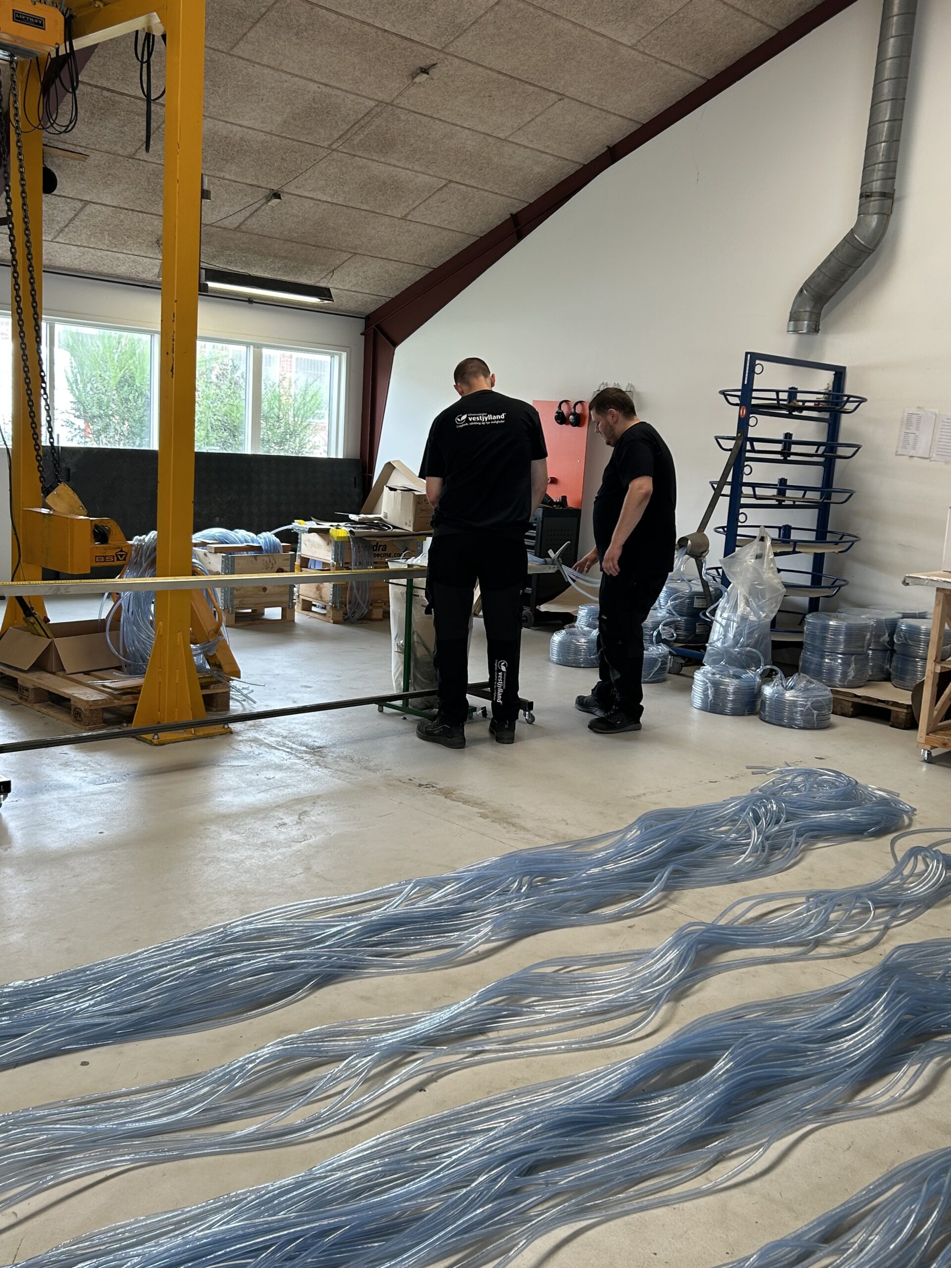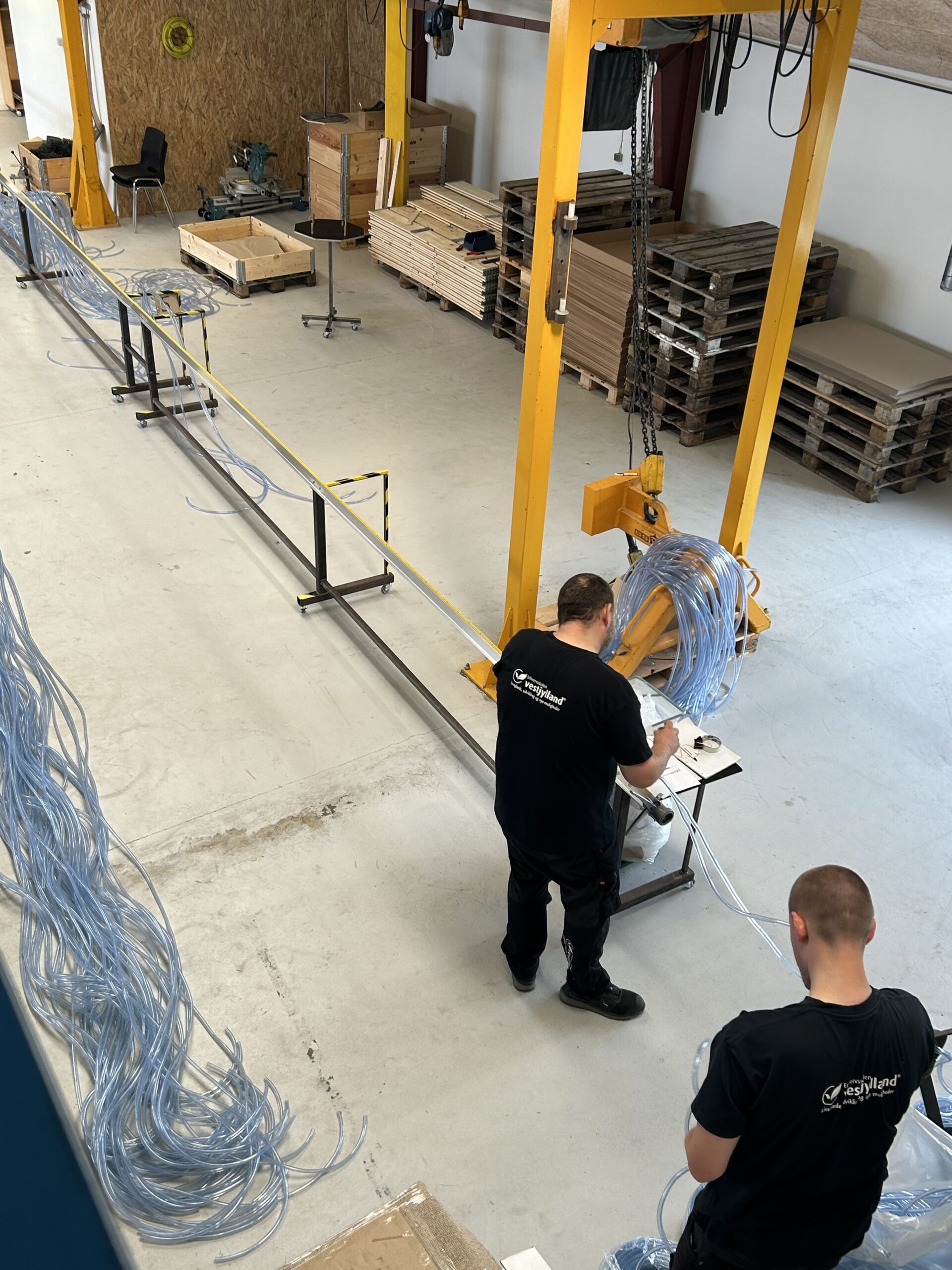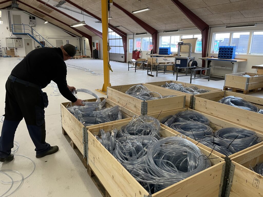 Her har vi et stort værksted hvor vi laver produktion og montage.