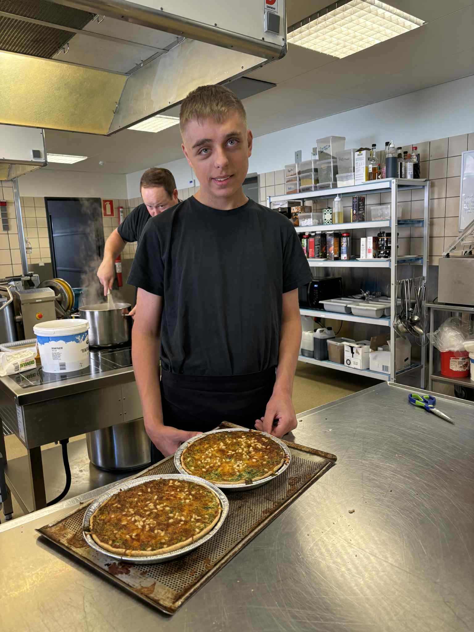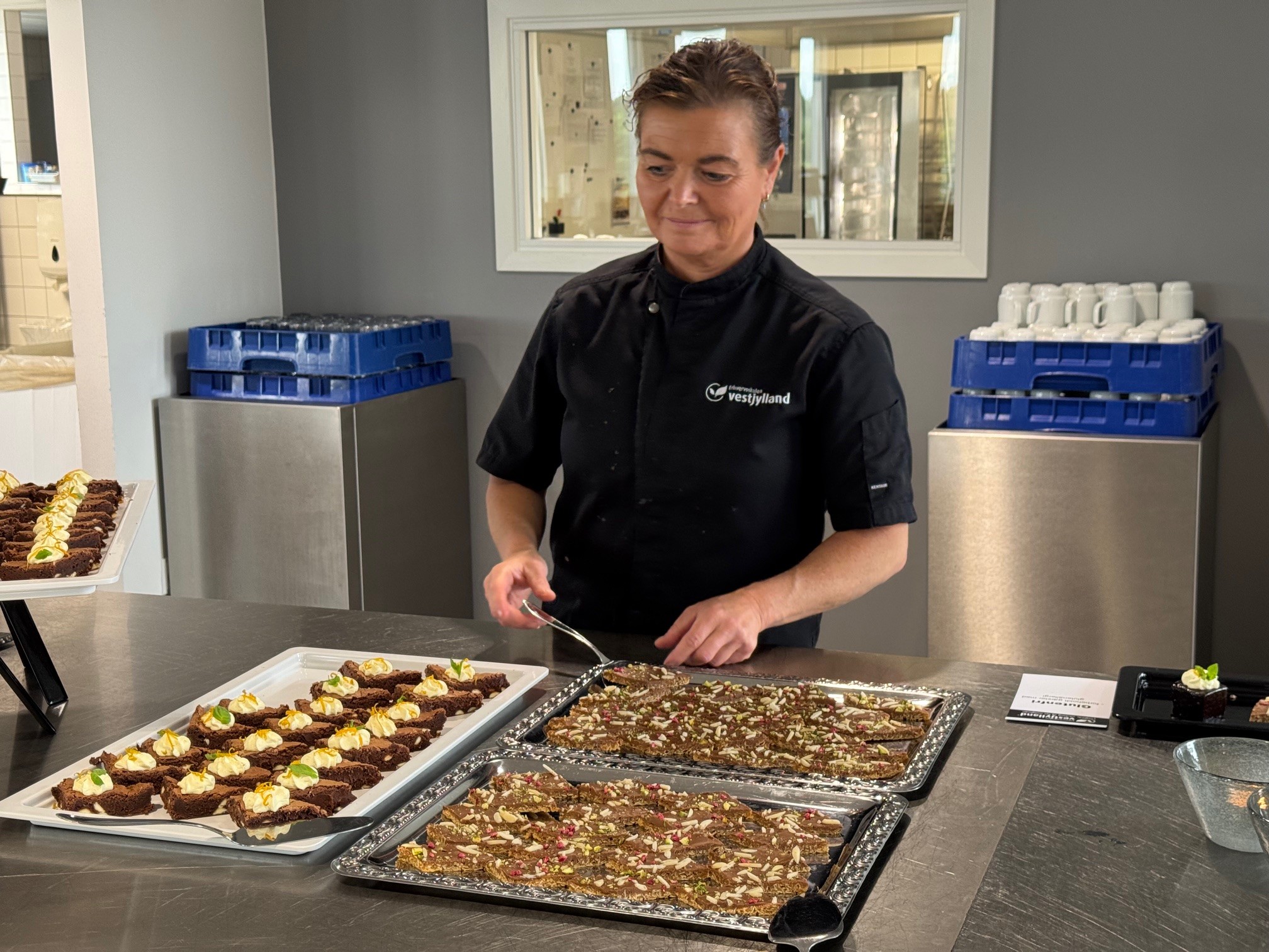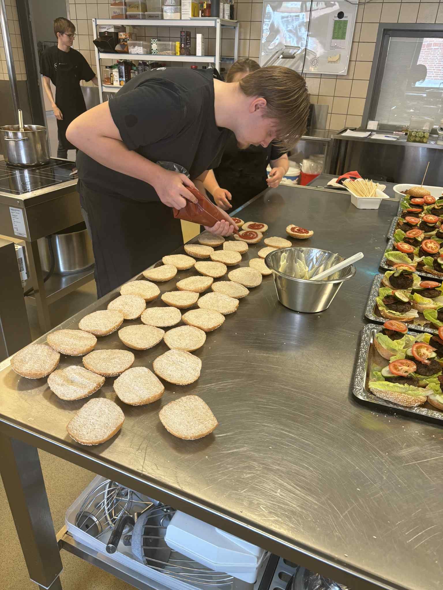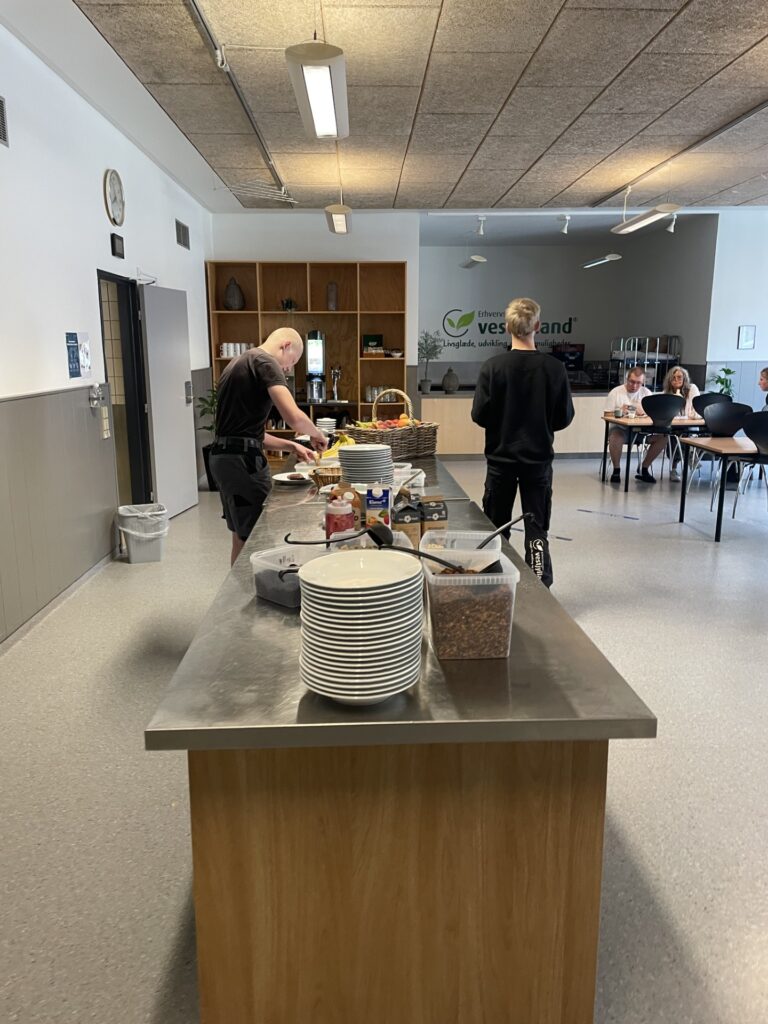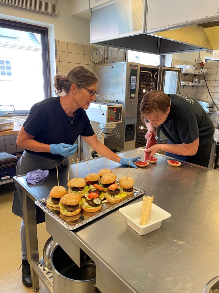 • Produktion – vi laver blandt andet mad til medarbejdere og elever og bager kager til arrangementer, som vi servicerer internt på skolen.